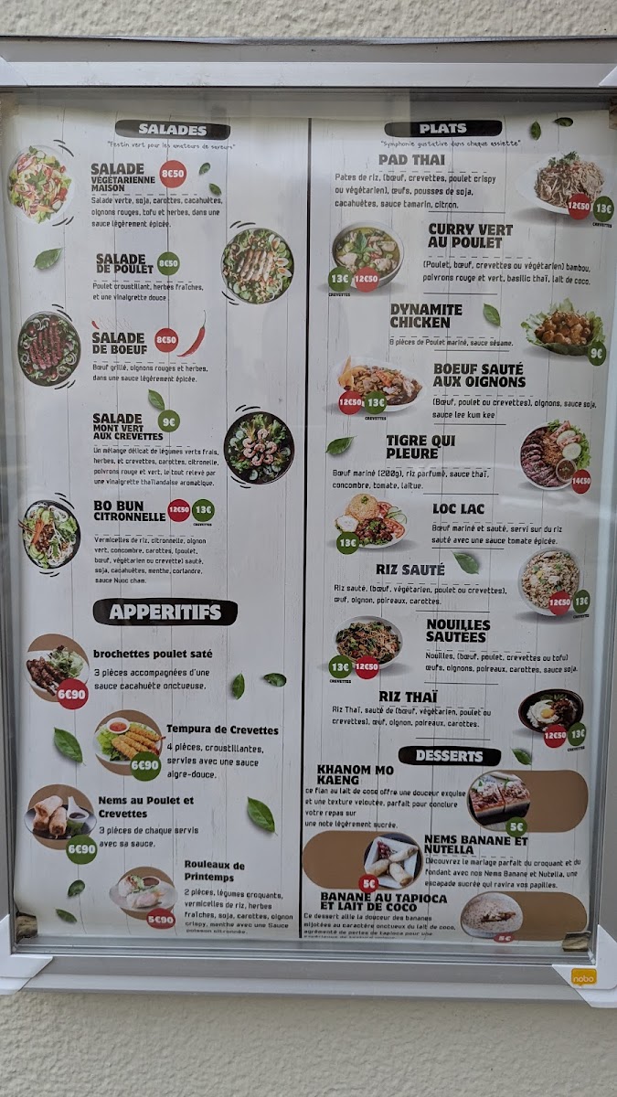 Le thaï yonnais Menu